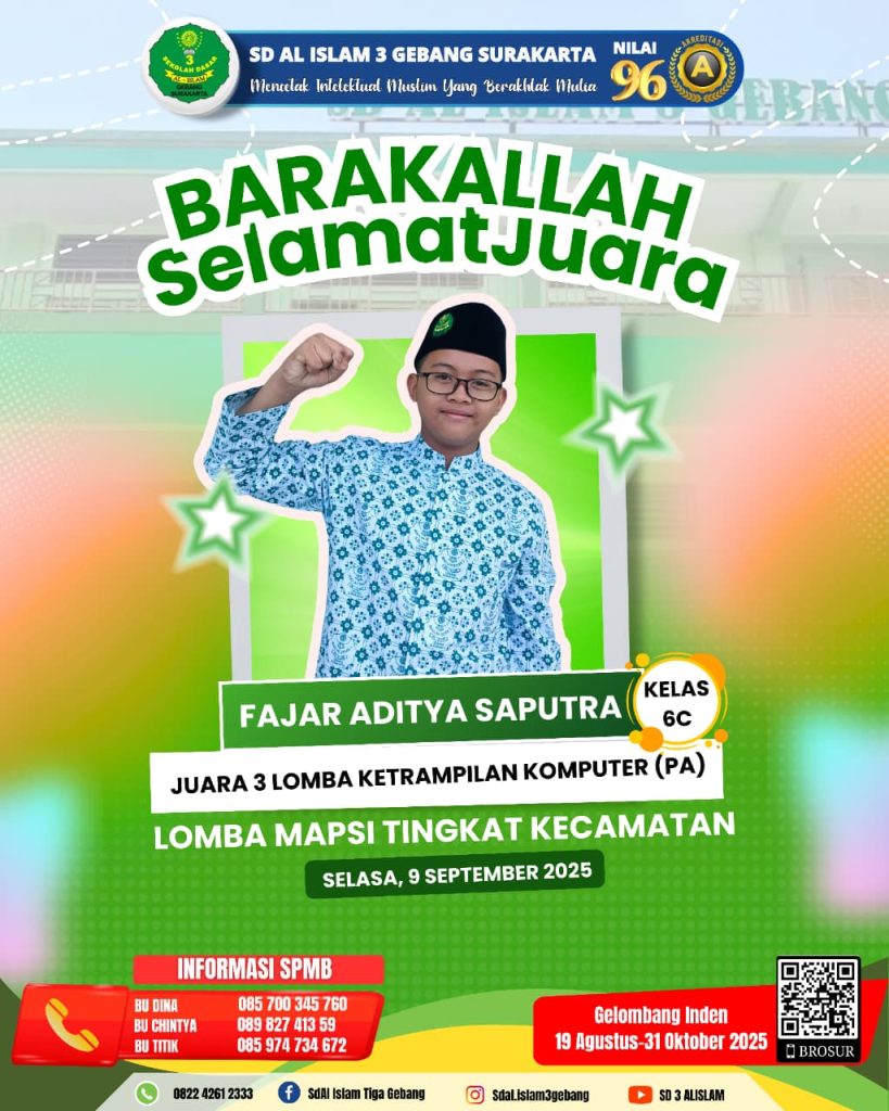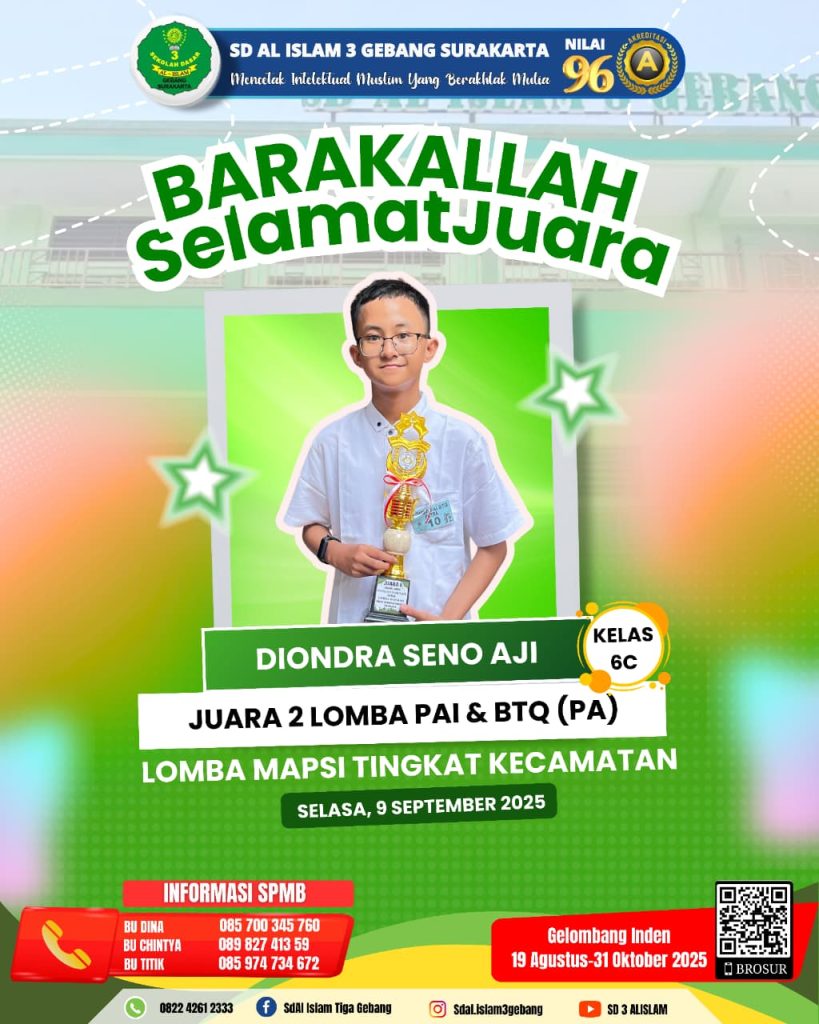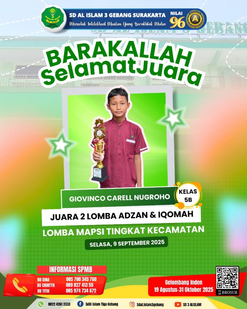 Juara 2 Adzan dan Iqomah Lomba MAPSI Tahun 2025 Tingkat Kecamatan Banjarsari