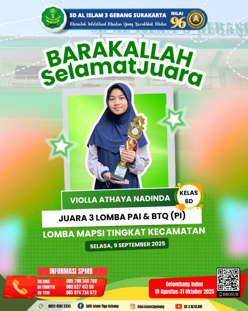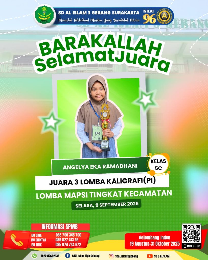 Juara 3 Kaligrafi Putri Lomba MAPSI Tahun 2025 Tingkat Kecamatan Banjarsari