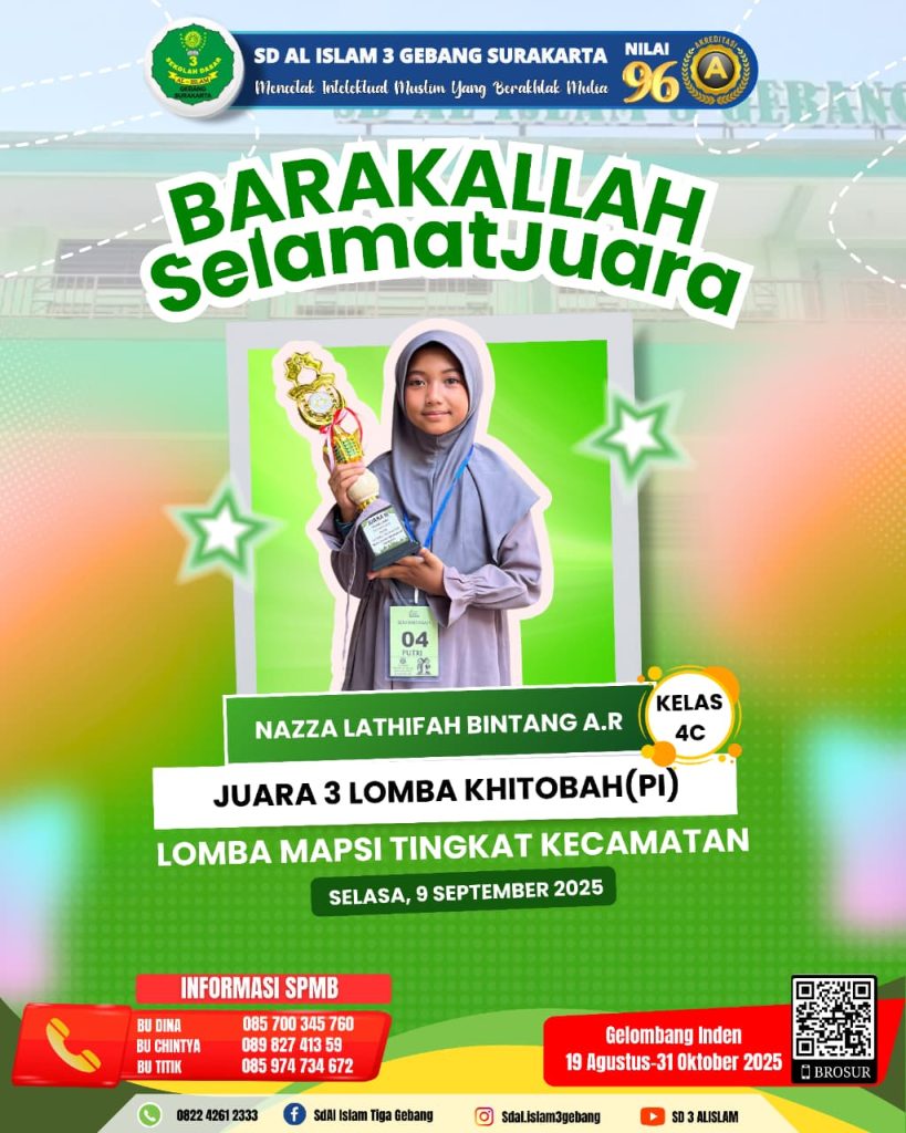 Juara 3 Khitobah Putri Lomba MAPSI Tahun 2025 Tingkat Kecamatan Banjarsari
